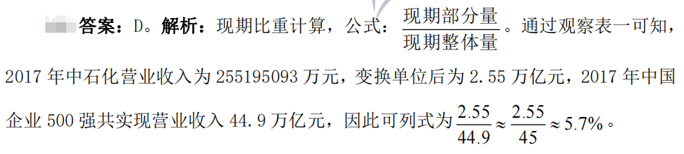解析:簡單計算,直接讀數(shù)。通過對比表格一、二,可以發(fā)現(xiàn),均在中國企業(yè) 500 強前 10 名的企業(yè)有中石化、中石油、國家電網(wǎng)、中國工商銀行、中國建設(shè)銀行、中國移動通信和中國農(nóng)業(yè)銀行 7 個企業(yè)。
