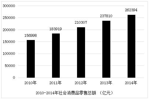2010-2014年,我國社會消費(fèi)品零售總額年平均增加約多少萬億元?