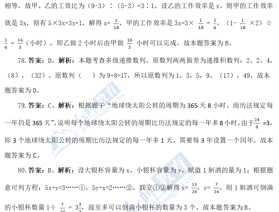80. 浮雕銀杯是我國古代常見的一種盛酒容器,有大銀杯和小銀杯之分。已知5個大銀杯加1個小銀杯,可以盛酒3斛(斛,是古代的一種容量單位),5個小銀杯加1個大銀杯,可以盛酒2斛,則1斛酒至多可以倒?jié)M小銀杯的數(shù)量為( )。