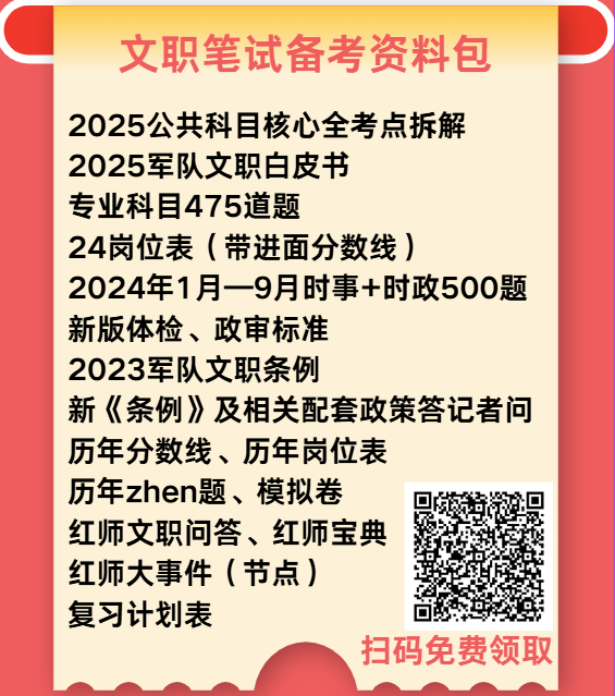 | 軍隊文職25年筆試網(wǎng)課 | 軍隊文職資料包 | 紅師師資助力考生 |