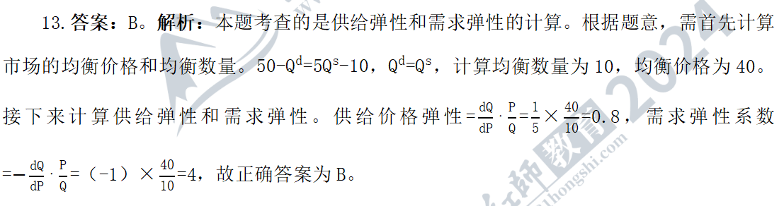 12.答案:D。解析:本題考查的是GDP相關(guān)內(nèi)容。生產(chǎn)性非市場交易與非生產(chǎn)性市場交易不計入GDP。A選項是生產(chǎn)性的非市場交易,BC選項是非生產(chǎn)性市場交易,均不計入GDP;D選項是生產(chǎn)性市場交易,故計入GDP,選D。