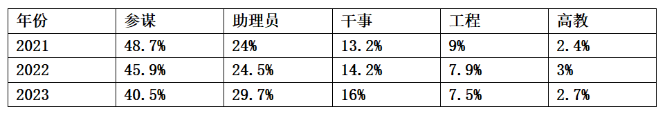 2021年-2023年考試科目為“管理學(xué)”的崗位類別(前五)占比