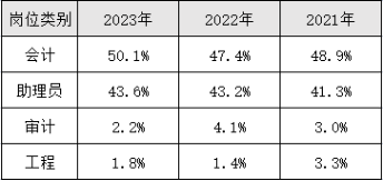 小編總結(jié)了占比最高的會計、助理員、審計、工程四個崗位歷年招考比例。