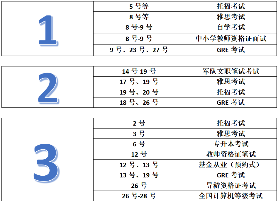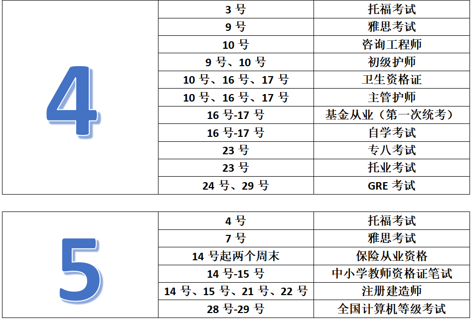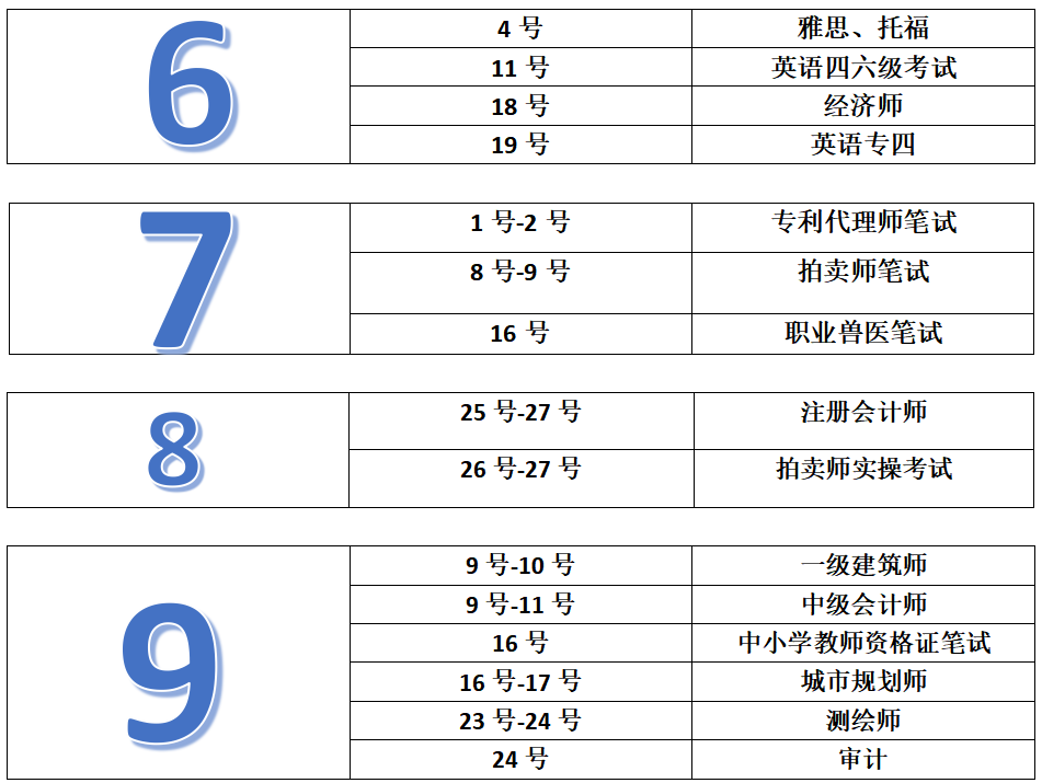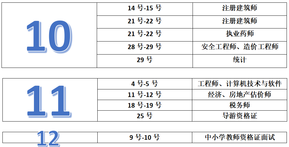 各類考試時間最全匯總!