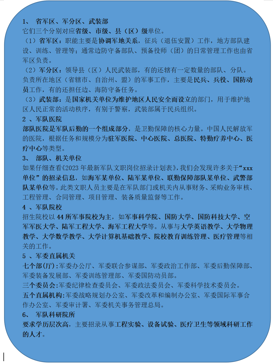 關于軍隊文職,到現(xiàn)在還不清楚文職11大招考單位的考生請注意,接下來小編一文為大家盤點清楚這11大招考單位!