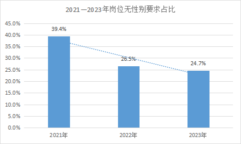 2021—2023年計算機科學與技術(shù)專業(yè)對應崗位標明的無性別要求占比是在逐年下降的,從40%降到了25%,所以從大環(huán)境來看,軍隊文職會有越來越多的崗位有性別限制。