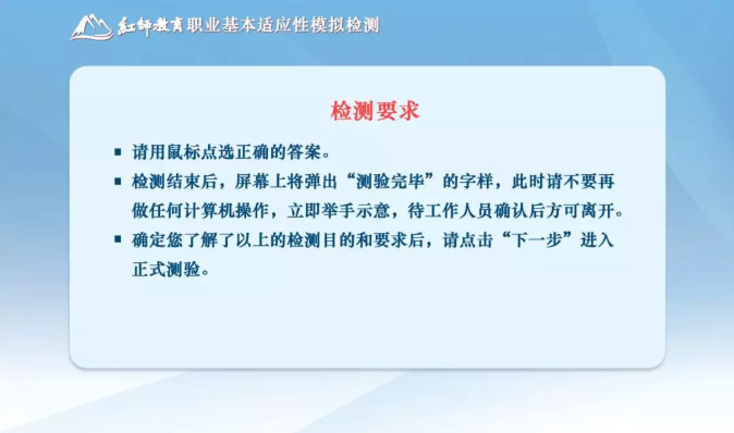 紅師教育為了幫助廣大文職面試考生順利通過心理測試,在2019年研發(fā)了“軍隊文職模擬心理測試系統(tǒng)”,并在2019年軍隊文職面試培訓中供考生在考前進行模擬練習。