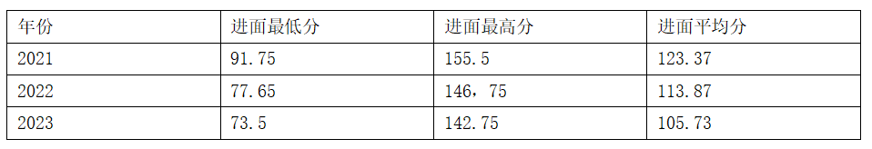 以下是2021年到2023年漢語言文學(xué)專業(yè)被招錄考生的成績表: