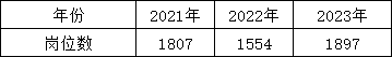 從 2021年—2023年,軍隊文職招收計算機科學(xué)與技術(shù)專業(yè)的崗位數(shù)保持在1500以上,2023年時,崗位數(shù)最多,達到了1900個。