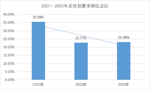 從2021年到2023年。計算機專業(yè)只招收女性的崗位數(shù)量不多,只有個位數(shù)。
