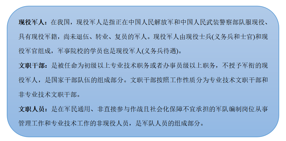 現(xiàn)役軍人、文職干部與文職人員既有區(qū)別又有聯(lián)系,文職人員由文職干部演變而來,取代了部分現(xiàn)役軍人的崗位。文職人員除了工資標準和現(xiàn)役干部相近一樣,在醫(yī)療、住房、社保上還有些區(qū)別,重點是文職人員不用轉(zhuǎn)業(yè),不用二次就業(yè)了。