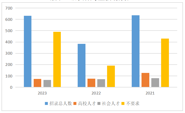 可以看到,2021年到2023年法學(xué)科目招錄考生來源,高校人才招錄人數(shù)還是較社會人才招錄人數(shù)多!雖然不做要求的人數(shù)占大多數(shù),但是根據(jù)小編上篇《軍隊文職【法學(xué)科目】解讀:備考該科目考生要求黨員崗位占一半?還有其他條件要求嗎?》文章分析,這些考生來源中對考生的學(xué)歷和相應(yīng)的專業(yè)能力都有著較高的要求。