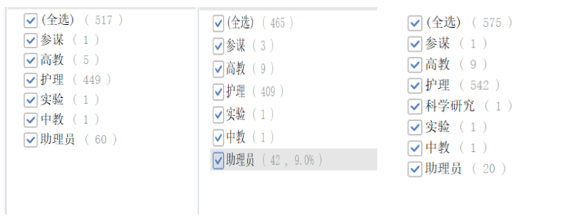 以下是2023年到2021年,備考護(hù)理學(xué)科目考生上岸軍隊(duì)文職后所從事的崗位類別。