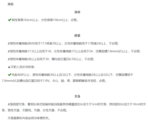 文職體檢的新標(biāo)準(zhǔn)對(duì)身高要求不高,男的162cm以上,女的158cm以上就可以了,再有就是身體健康沒(méi)有什么惡性病。雖說(shuō)有一定的要求,但我感覺(jué)這個(gè)身體條件已經(jīng)很低了,男女、高矮、胖瘦問(wèn)題都不是考察的重點(diǎn),所以大家可以放心!