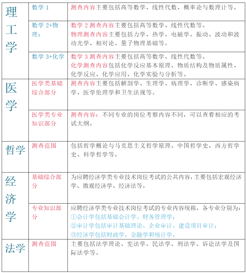 軍隊(duì)文職專業(yè)考試科目包括管理崗位專業(yè)科目考試大綱和43個(gè)專業(yè)技術(shù)崗位專業(yè)科目,按照理工學(xué)、醫(yī)學(xué)、哲學(xué)、經(jīng)濟(jì)學(xué)、法學(xué)、教育學(xué)、文學(xué)、歷史學(xué)、圖書檔案學(xué)、外國(guó)語(yǔ)言文學(xué)、農(nóng)學(xué)和藝術(shù)學(xué)等12個(gè)學(xué)科門類相應(yīng)設(shè)置專業(yè)科目,主要測(cè)查專業(yè)素質(zhì)和能力。
