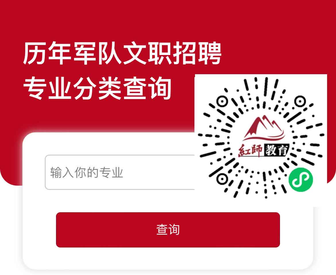 紅師教育考試網(wǎng)考試網(wǎng)訊:2024軍隊文職崗位專業(yè)分類查詢?關(guān)注”紅師孔雀藍文職考試網(wǎng)“微信公眾號,考試資訊不錯過。