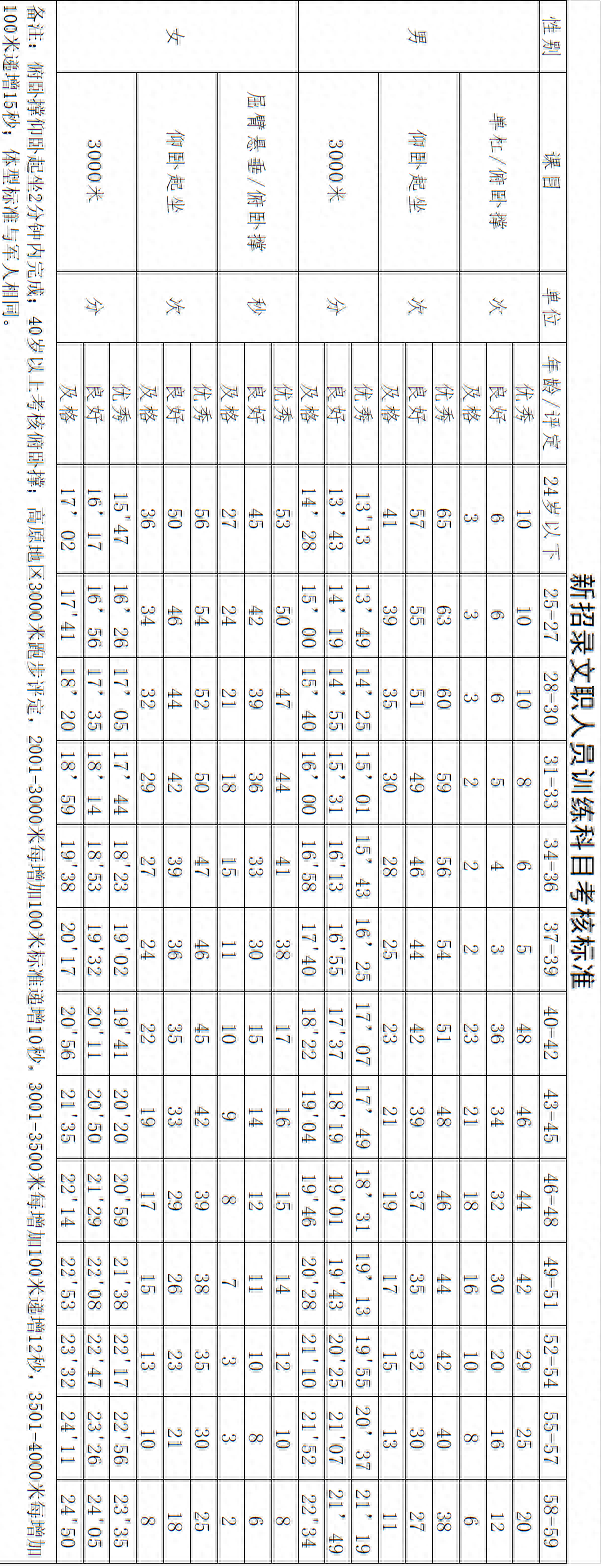 部隊(duì)文職體能考核標(biāo)準(zhǔn)表