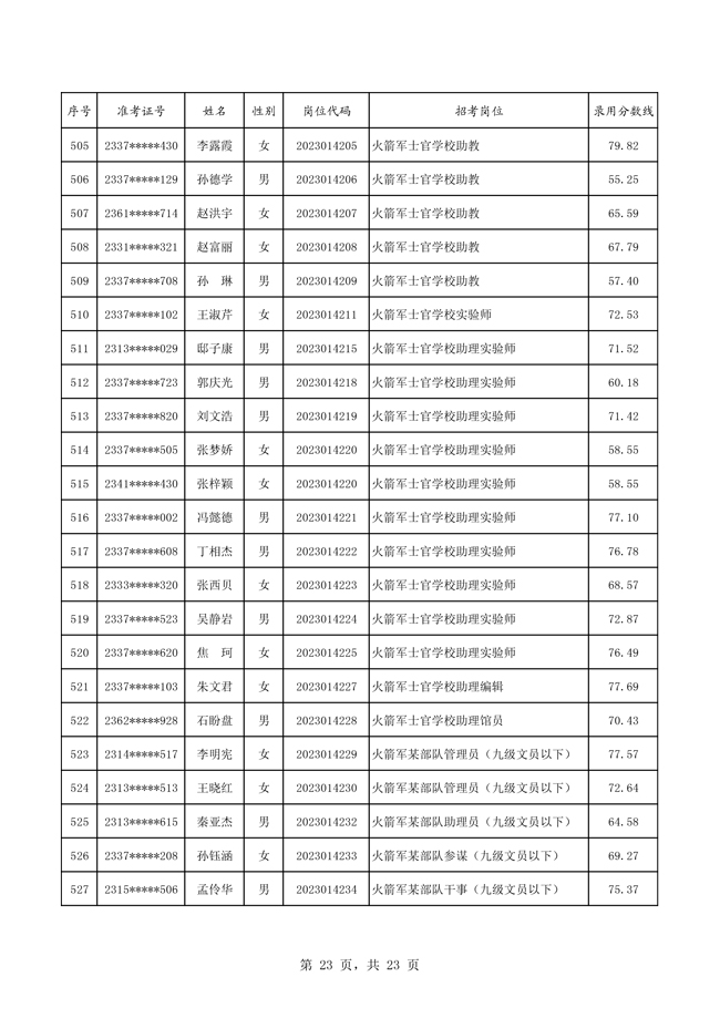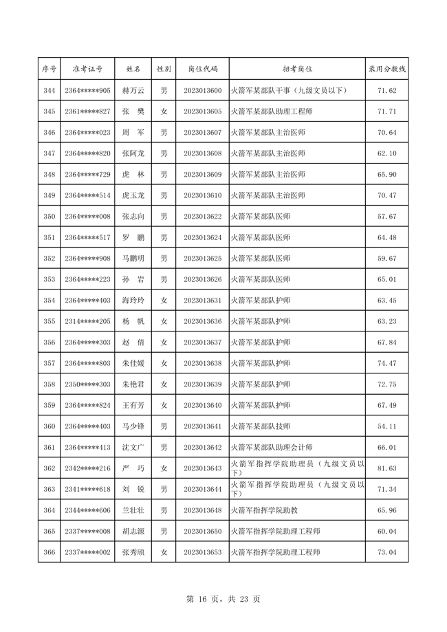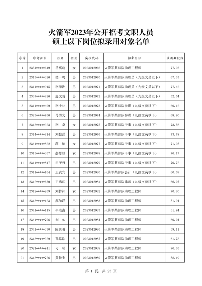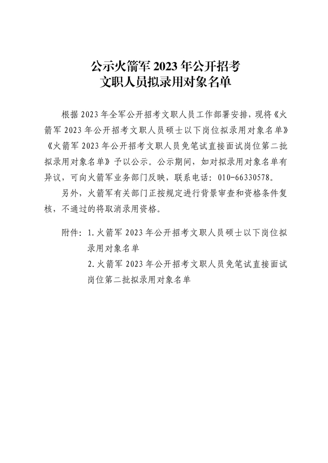 原文標(biāo)題:公示火箭軍2023年公開招考 文職人員擬錄用對(duì)象名單