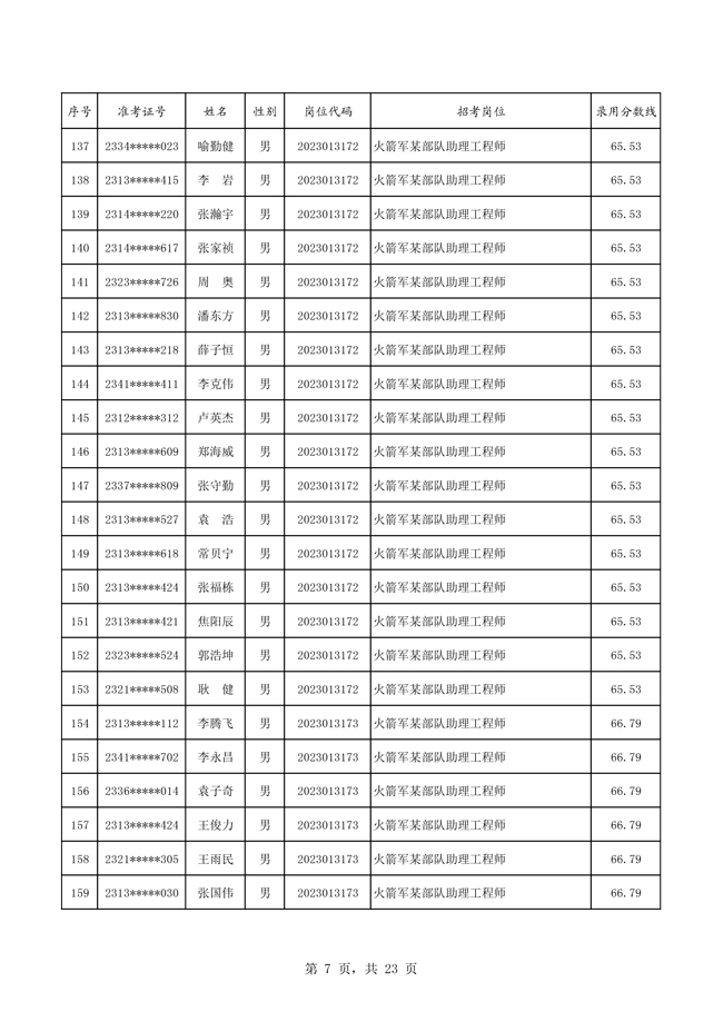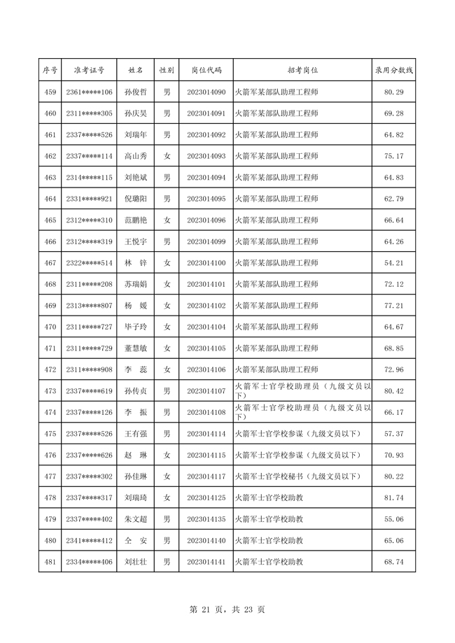 2023年軍隊(duì)文職武警部隊(duì)第二批管理、技術(shù)崗位和技能崗位擬錄用79人名單
