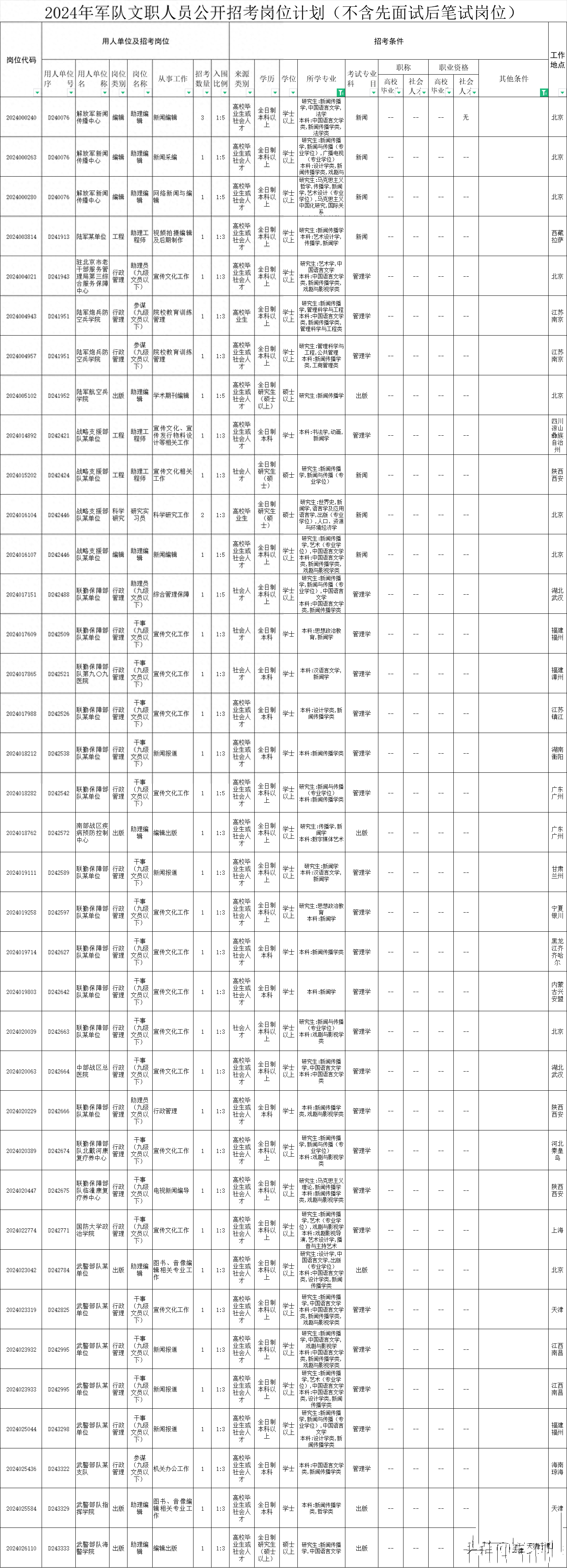 2024年軍隊(duì)文職人員公開(kāi)招考 崗位計(jì)劃(不含先面試后筆試崗位)