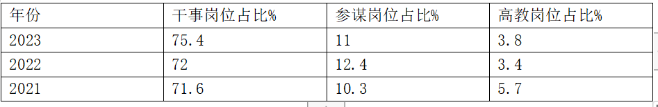 2021-2023年漢語言文學(xué)專業(yè)報(bào)考崗位前三位占比率