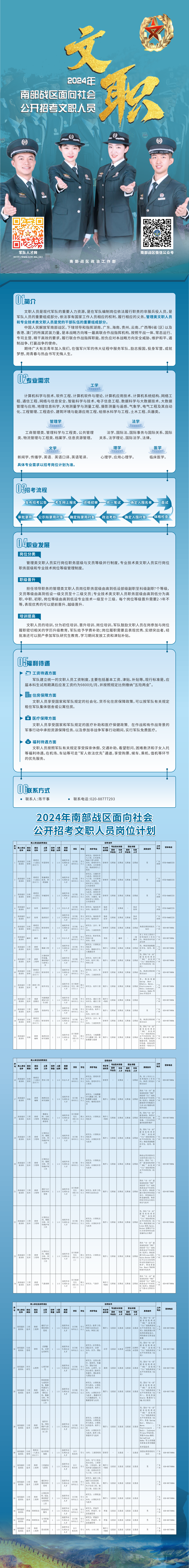 全軍2024年面向社會(huì)公開招考文職人員崗位計(jì)劃已經(jīng)在軍隊(duì)人才網(wǎng)(http://www.81rc.mil.cn或者h(yuǎn)ttp://81rc.81.cn)正式發(fā)布,報(bào)名時(shí)間為2023年10月23日8:00至31日18:00,現(xiàn)將南部戰(zhàn)區(qū)2024年面向社會(huì)公開招考文職人員工作公告如下。