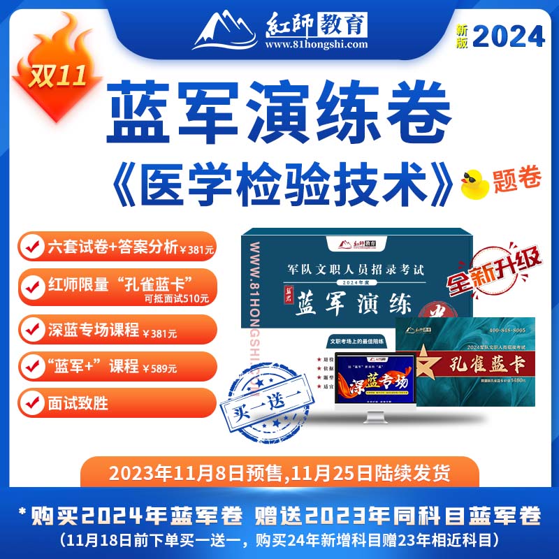 2024紅師教育軍隊(duì)文職醫(yī)學(xué)檢驗(yàn)技術(shù)專業(yè)《藍(lán)軍演練卷》將于11月8日開始預(yù)售!
