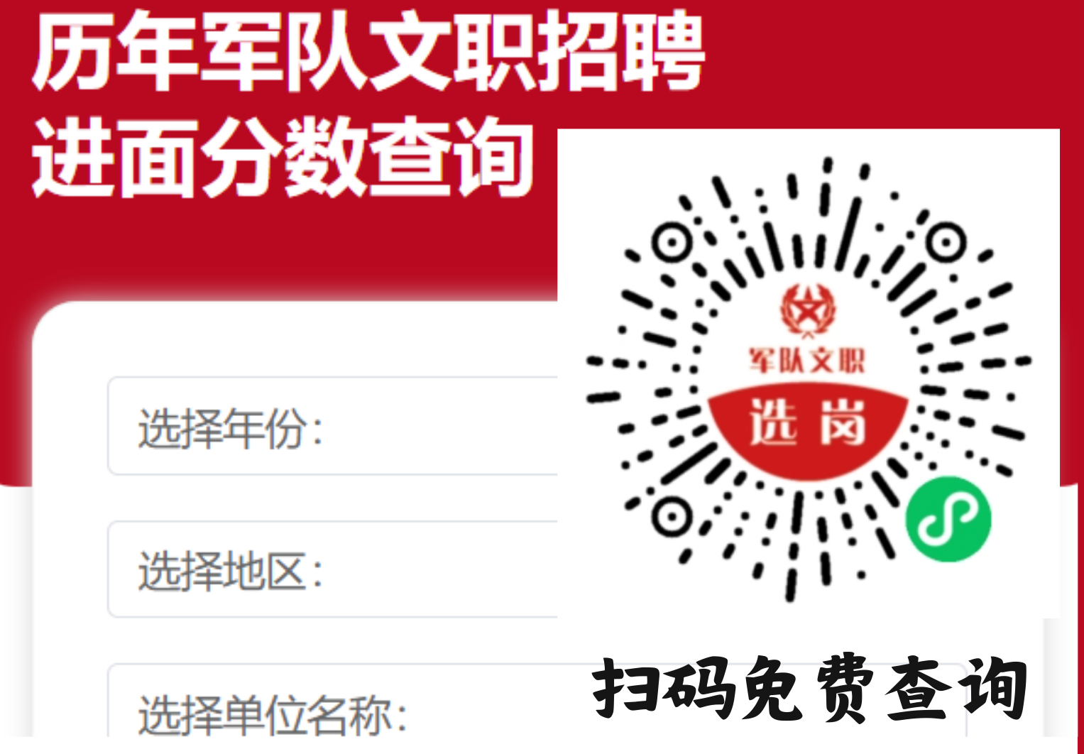 歷年軍隊(duì)文職分?jǐn)?shù)線,掃碼免費(fèi)查詢!