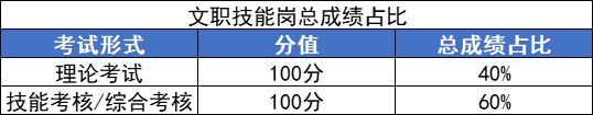 技能考核根據(jù)崗位性質(zhì)不同,考核的內(nèi)容也不一樣,滿分同樣是100分,理論考試和技能考核在總成績中的占比分別是40%、60%。