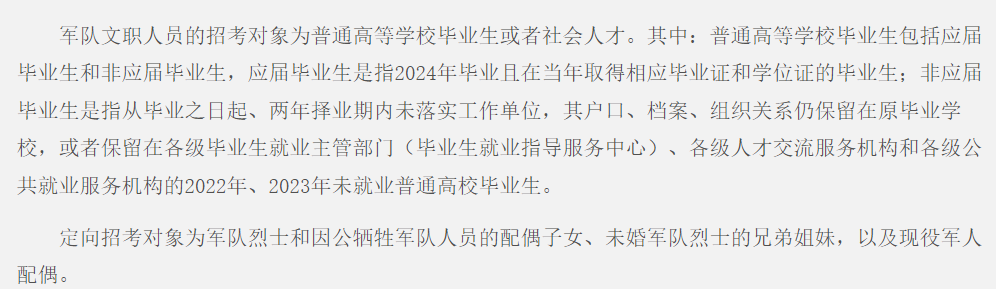 一、畢業(yè)兩年以上且符合文職招聘條件的人。