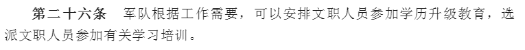上圖截選自去年修訂的《中國人民解放軍文職人員條例》,新條例對于學歷升級這塊有了明確的規(guī)定: