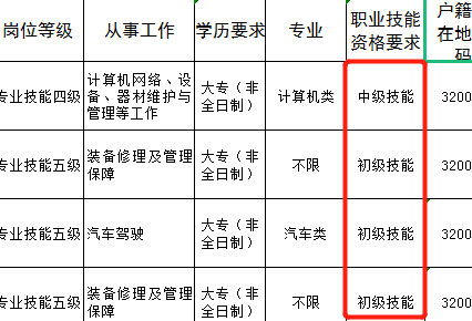 報考技能崗的同學莫慌,部隊單位招聘計劃表里,初/中/高級三個級別中,招的初級技能人員比中級和高級要多得多。
