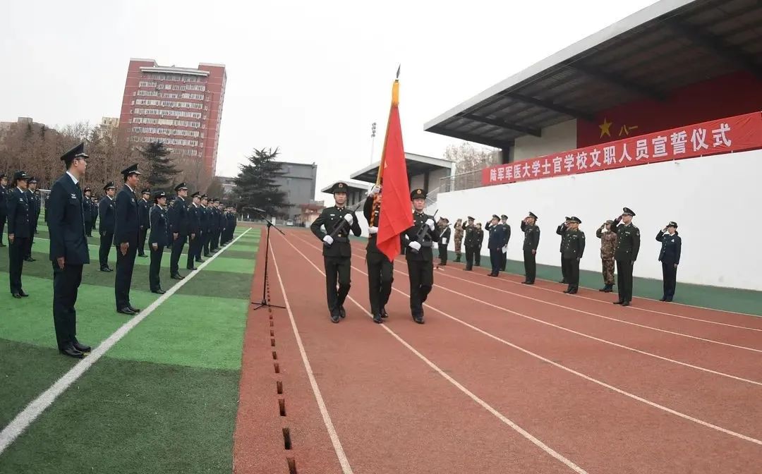 新聘的文職人員入職后都要面對鮮艷的軍旗鄭重舉起右拳鏗鏘立誓。