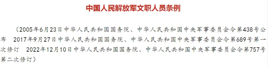 去年年初,中華人民共和國國務院、中華人民共和國中央軍事委員會共同頒發(fā)新的《中國人民解放軍文職人員條例》以及配套文件。