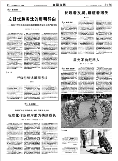 《解放軍報》曾發(fā)過一篇《立好優(yōu)勝劣汰的鮮明導(dǎo)向》,其中說到:“讓兩名體驗了6個月軍營生活的新聘文職人員打破了對“鐵飯碗”的幻想。”