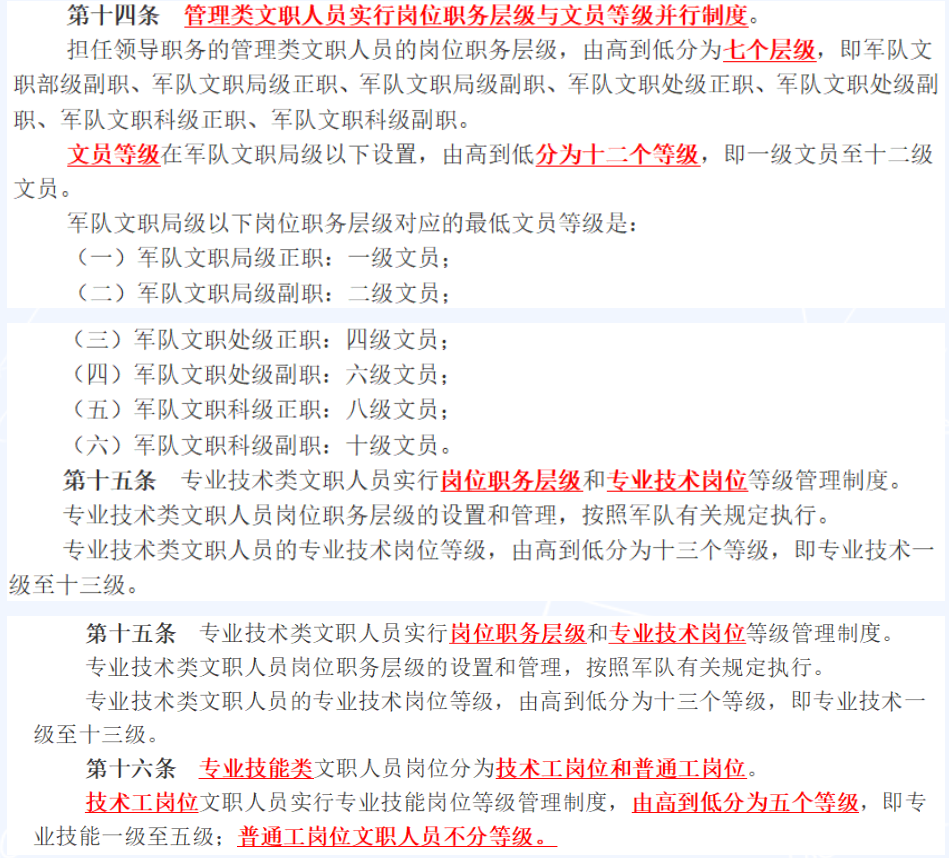 軍隊(duì)文職人員分為管理崗、技術(shù)崗和技能崗。其中,管理崗和技術(shù)崗的晉升如下圖所示: