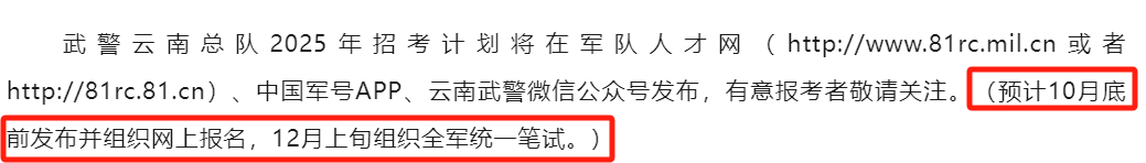 最近2025年軍隊文職預公告頻繁發(fā)布,云南武警總隊發(fā)布相關信息:預計10月底發(fā)布公告并組織報名,12月上旬統一筆試。