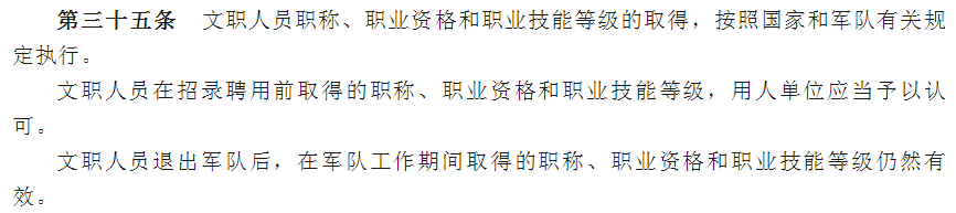 對招錄聘用前后在軍隊或者地方獲得的職稱、職業(yè)資格或者職業(yè)技能等級予以互認(rèn)。
