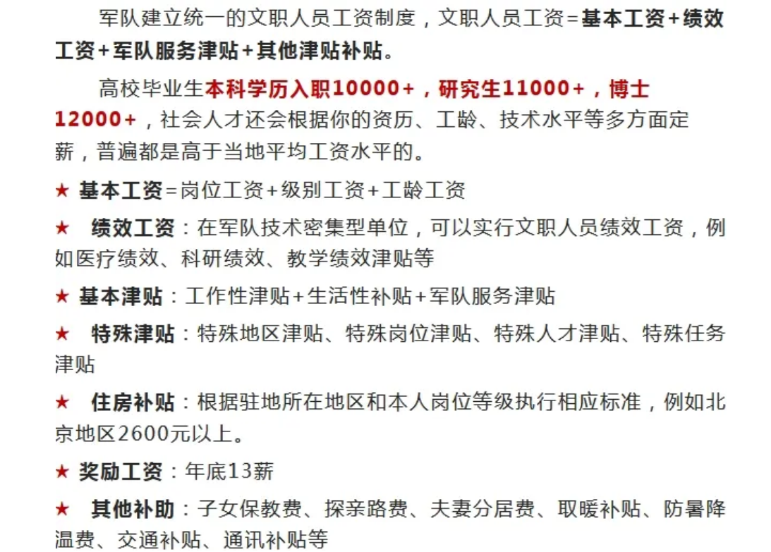 家庭收入方面,“軍官+文職”的組合每年可達到至少25萬元的穩(wěn)定收入,而且可以隨著級別的升高實現(xiàn)收入的穩(wěn)步增長,這個級別的收入足以保證良好的生活質(zhì)量。