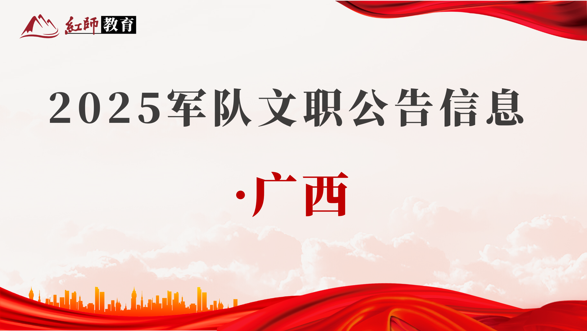 備考2025年軍隊(duì)文職的小伙伴們大家好!25年廣西省軍隊(duì)文職人員招考公告已發(fā)布,為了大家更好的了解文職招考信息,小編整理了2025年軍隊(duì)人才網(wǎng)發(fā)布的軍隊(duì)文職公告信息,接下來(lái)和紅師教育小編一起來(lái)看看2025年廣西省軍隊(duì)文職人員招考公告吧: