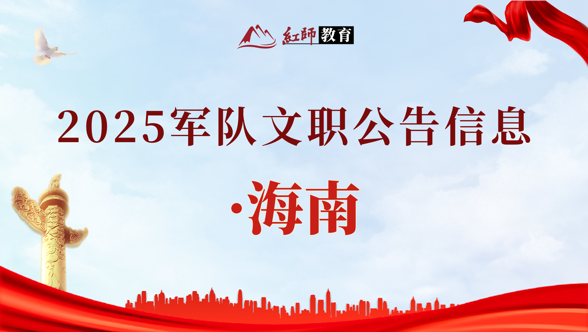 備考2025年軍隊(duì)文職的小伙伴們大家好!25年海南省軍隊(duì)文職人員招考公告已發(fā)布,為了大家更好的了解文職招考信息,小編整理了2025年軍隊(duì)人才網(wǎng)發(fā)布的軍隊(duì)文職公告信息,接下來(lái)和紅師教育小編一起來(lái)看看2025年海南省軍隊(duì)文職人員招考公告吧: