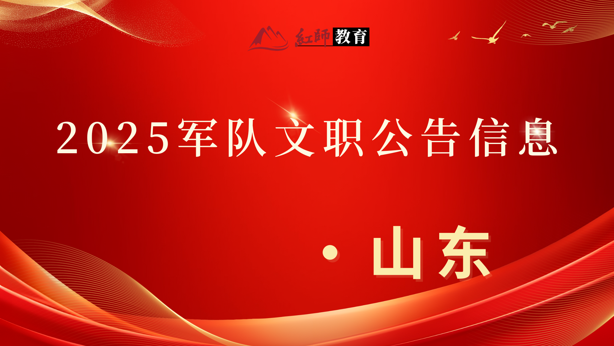 備考2025年軍隊文職的小伙伴們大家好!25年山東省軍隊文職人員招考公告已發(fā)布,為了大家更好的了解文職招考信息,小編整理了2025年軍隊人才網(wǎng)發(fā)布的軍隊文職公告信息,接下來和紅師教育小編一起來看看2025年山東省軍隊文職人員招考公告吧: