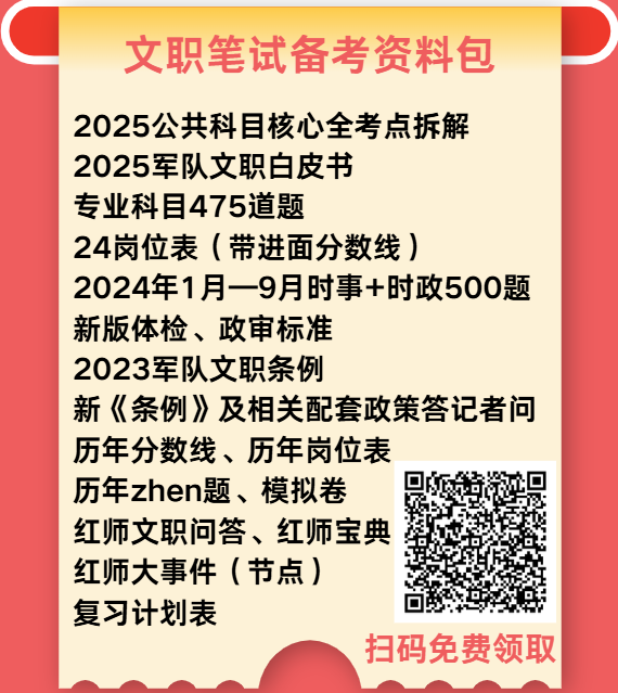 | 軍隊(duì)文職25年筆試網(wǎng)課 | 軍隊(duì)文職資料包 | 紅師師資助力考生 |