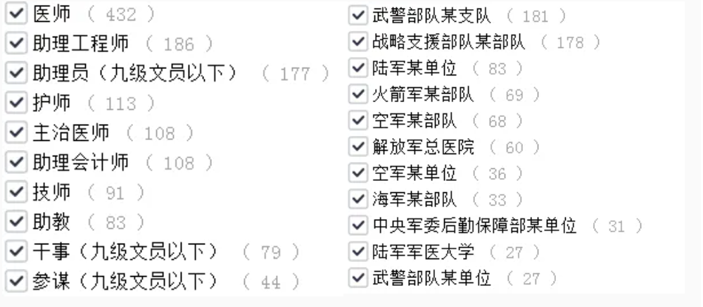 其實(shí)看過(guò)往年軍隊(duì)文職崗位表的同學(xué)應(yīng)該能看出來(lái),今年女生能報(bào)的崗位還算多的。就拿去年的崗位來(lái)對(duì)比一下: