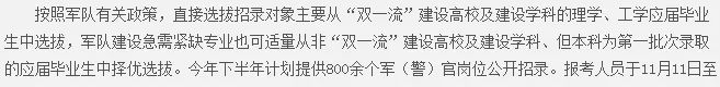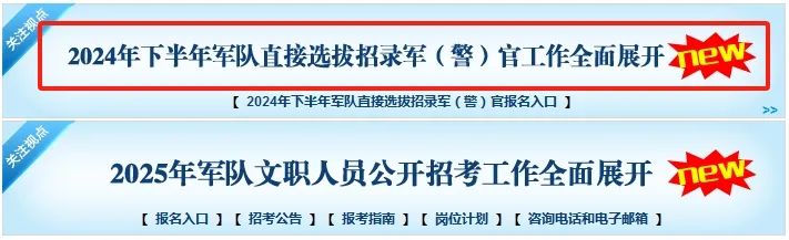 雖然2025軍隊文職報名已經(jīng)結束了,但2024下半年的軍隊直招軍官計劃還在報名中,11月17日截止。