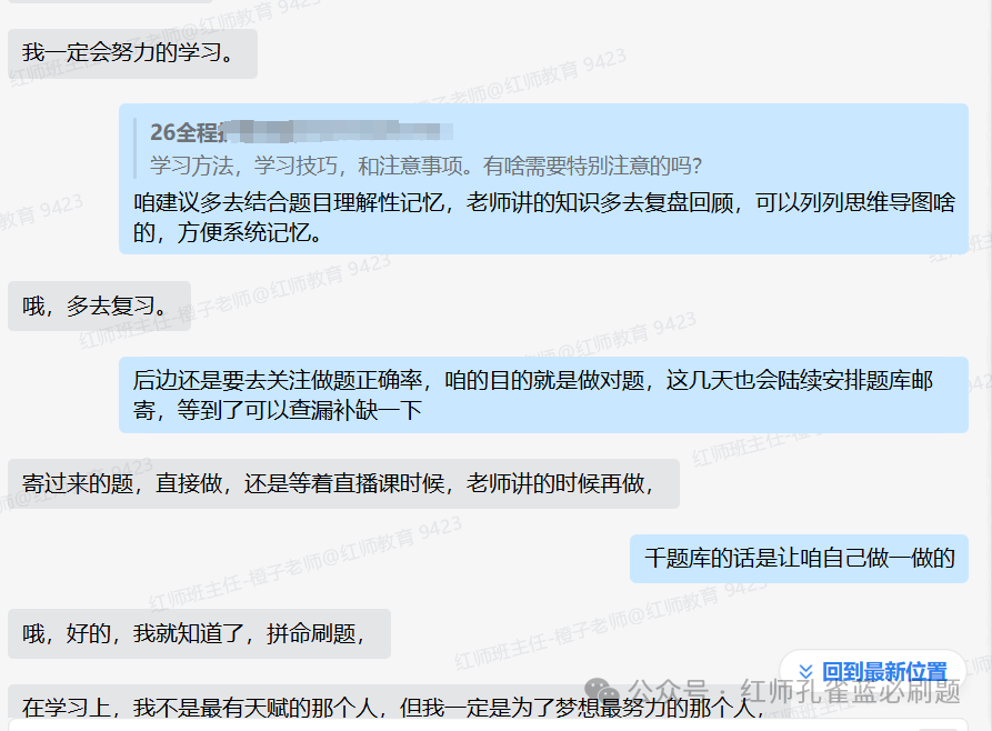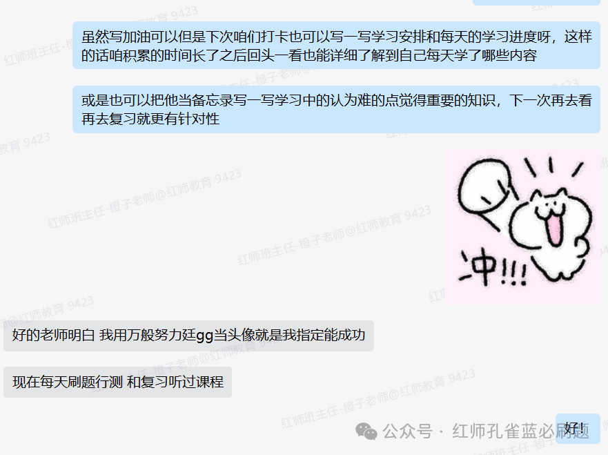 3小班群盯進度+早午晚打卡提醒,專屬規(guī)劃+數(shù)據(jù)追蹤全方位督學服務,后臺實時監(jiān)控學習進度,班主任通過后臺數(shù)據(jù)了解你的學習情況。如果進度落后,班主任會三天兩頭聯(lián)系你,督促并幫助調(diào)整學習計劃。