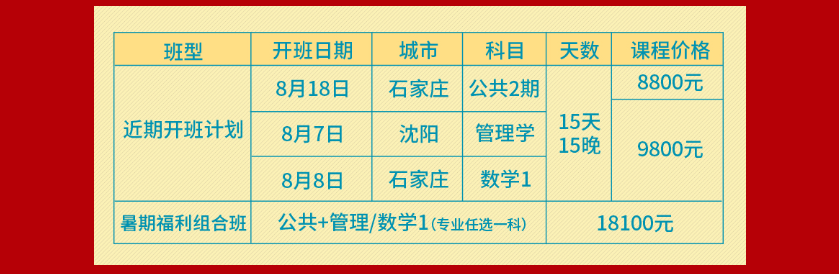 以下是近期開(kāi)班安排,可根據(jù)自己時(shí)間選擇