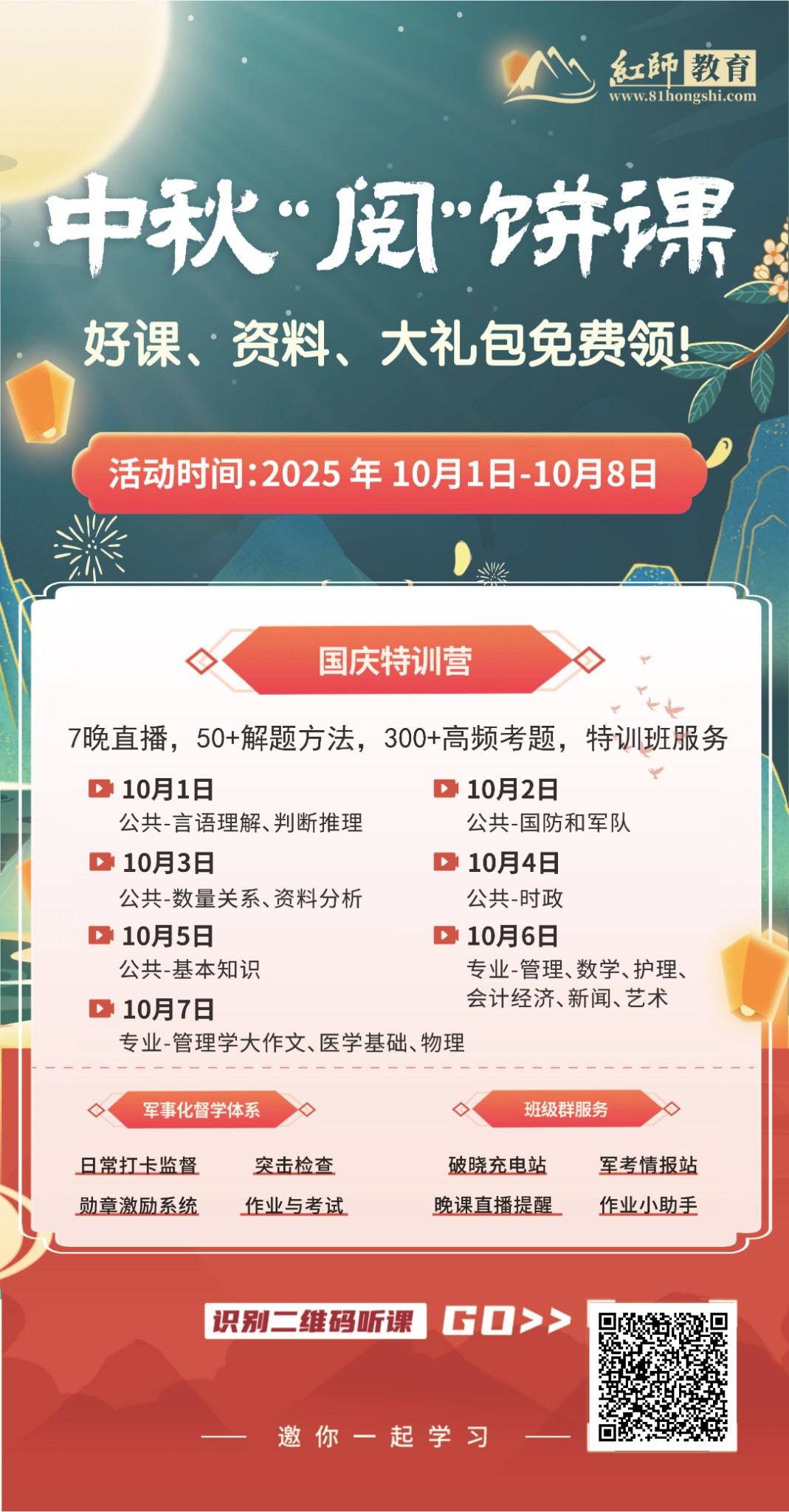 不用糾結(jié) “國慶學(xué)不學(xué)”,不用顧慮 “自學(xué)沒方向”!紅師教育國慶文職特訓(xùn)營重磅上線,0.01 元即可鎖定 7 天直播課 + 全程督學(xué)服務(wù),花一杯水的零頭,get 能直接用的應(yīng)試干貨,備考效率翻倍!