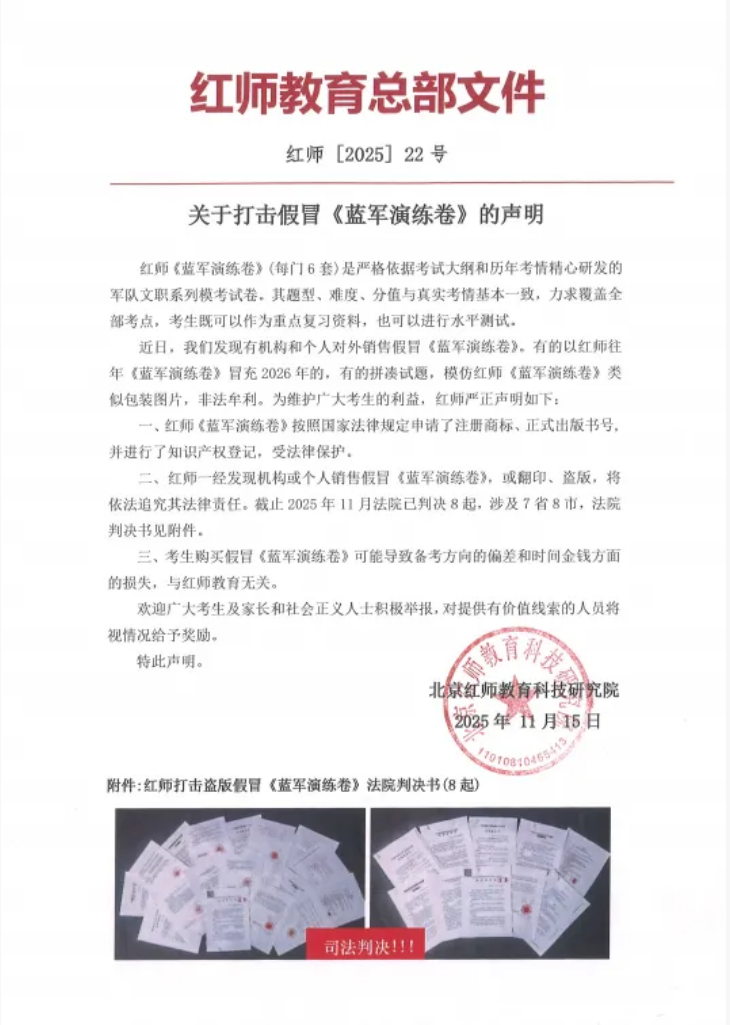 但最近有學(xué)員反饋,市面上出現(xiàn)了《藍(lán)軍演練卷》的盜版產(chǎn)品。在此嚴(yán)肅提醒:盜版卷印刷模糊、錯(cuò)題百出,甚至沿用幾年前的舊題型,用它復(fù)習(xí)簡直是“踩坑”。
