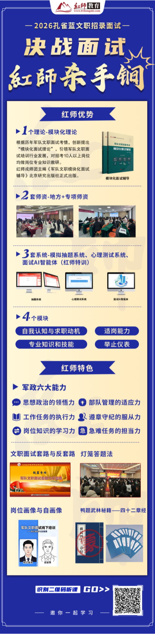 軍隊文職面試反模板化趨勢加劇,普通公考培訓(xùn)根本踩不到得分點?文職面試選對賽道至關(guān)重要!紅師教育,懂文職、更懂面試,精準(zhǔn)匹配軍隊面試考核核心需求!